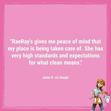 When you hire RaeRay's Professional Cleaning you get a cleaner who listens to how you want things done and exceeds your expectations every time! We take great pride in knowing that out of all the cleaners you could of called you would call us. Give us a try, the quotes on us!